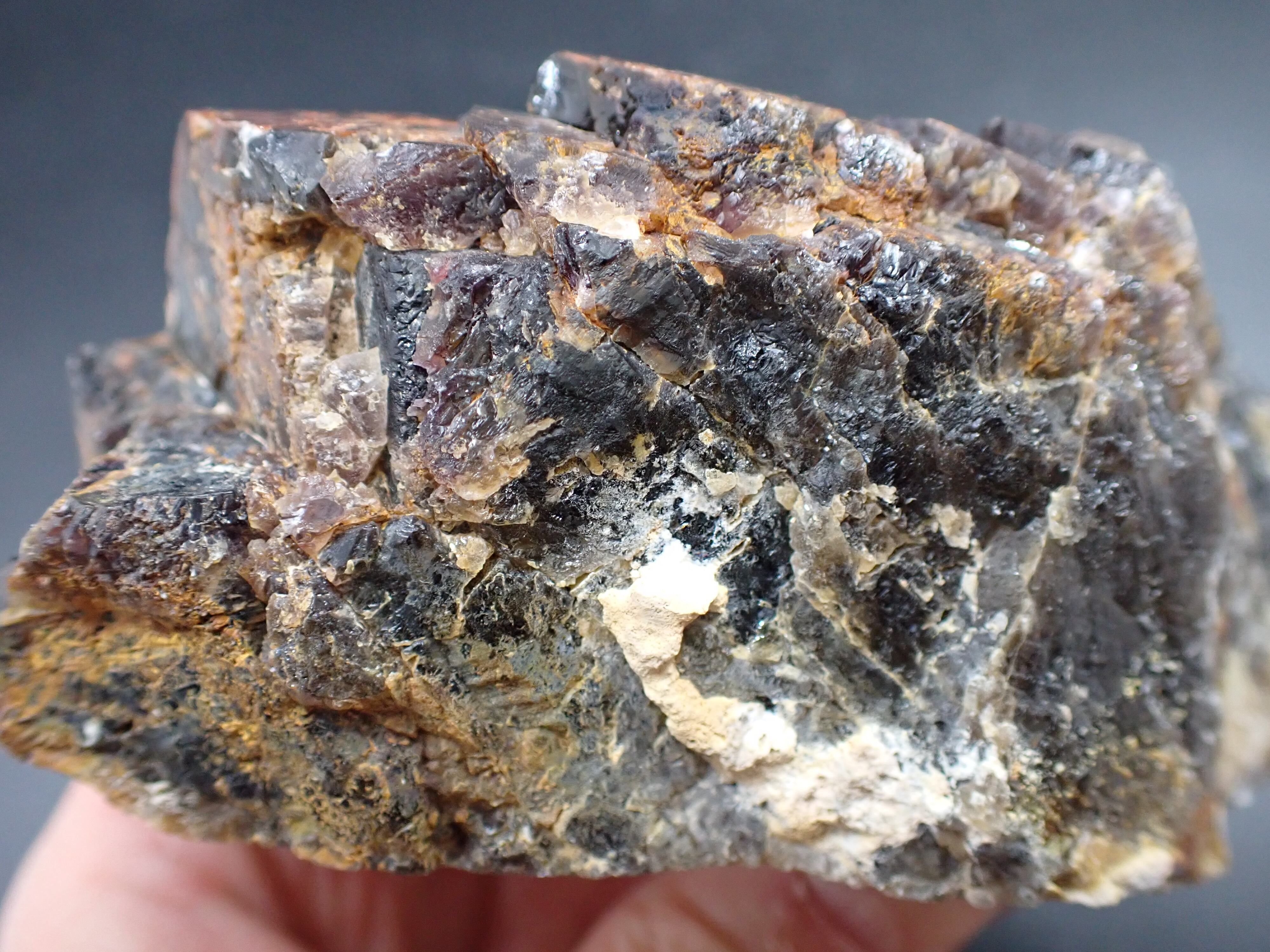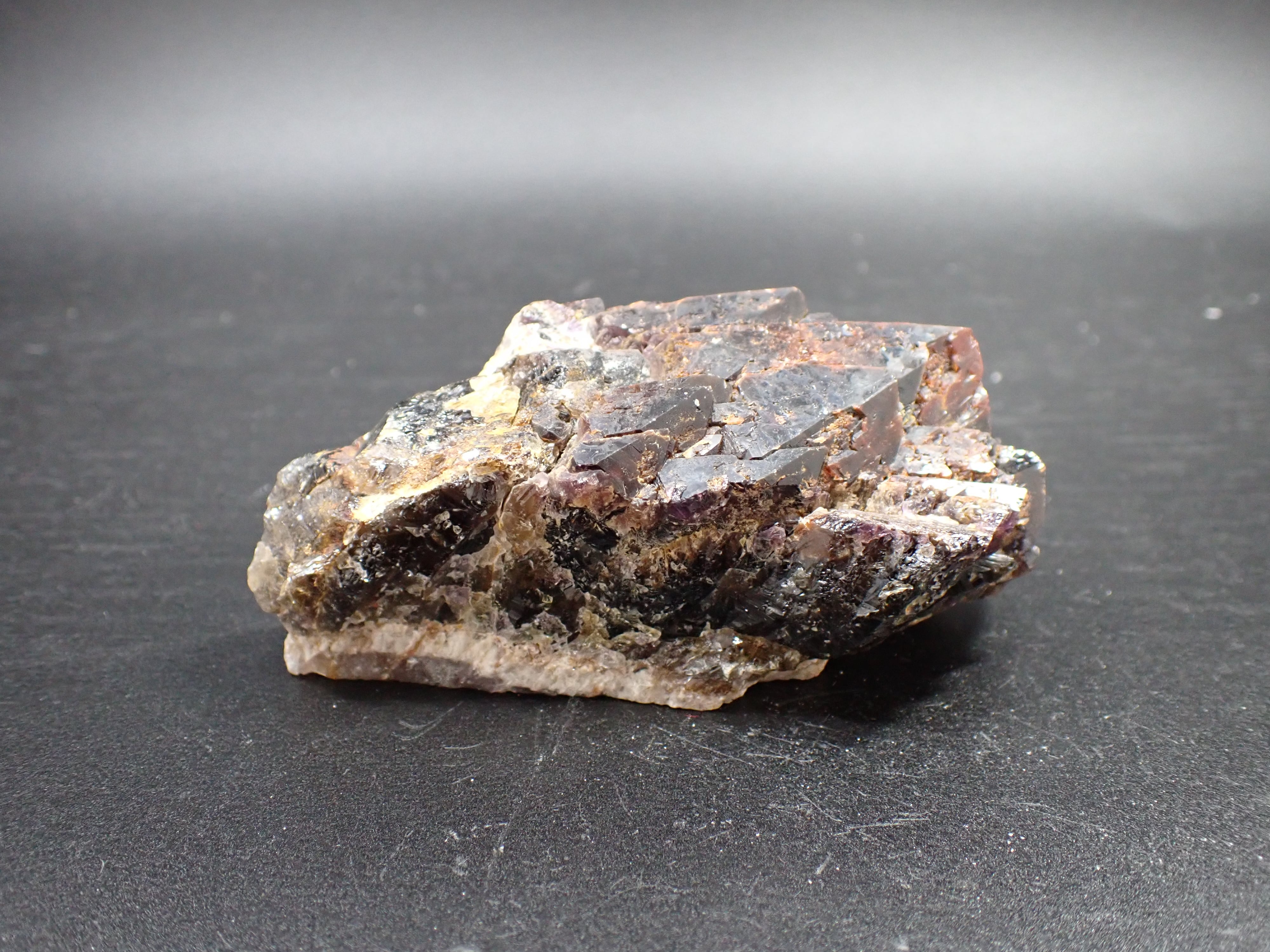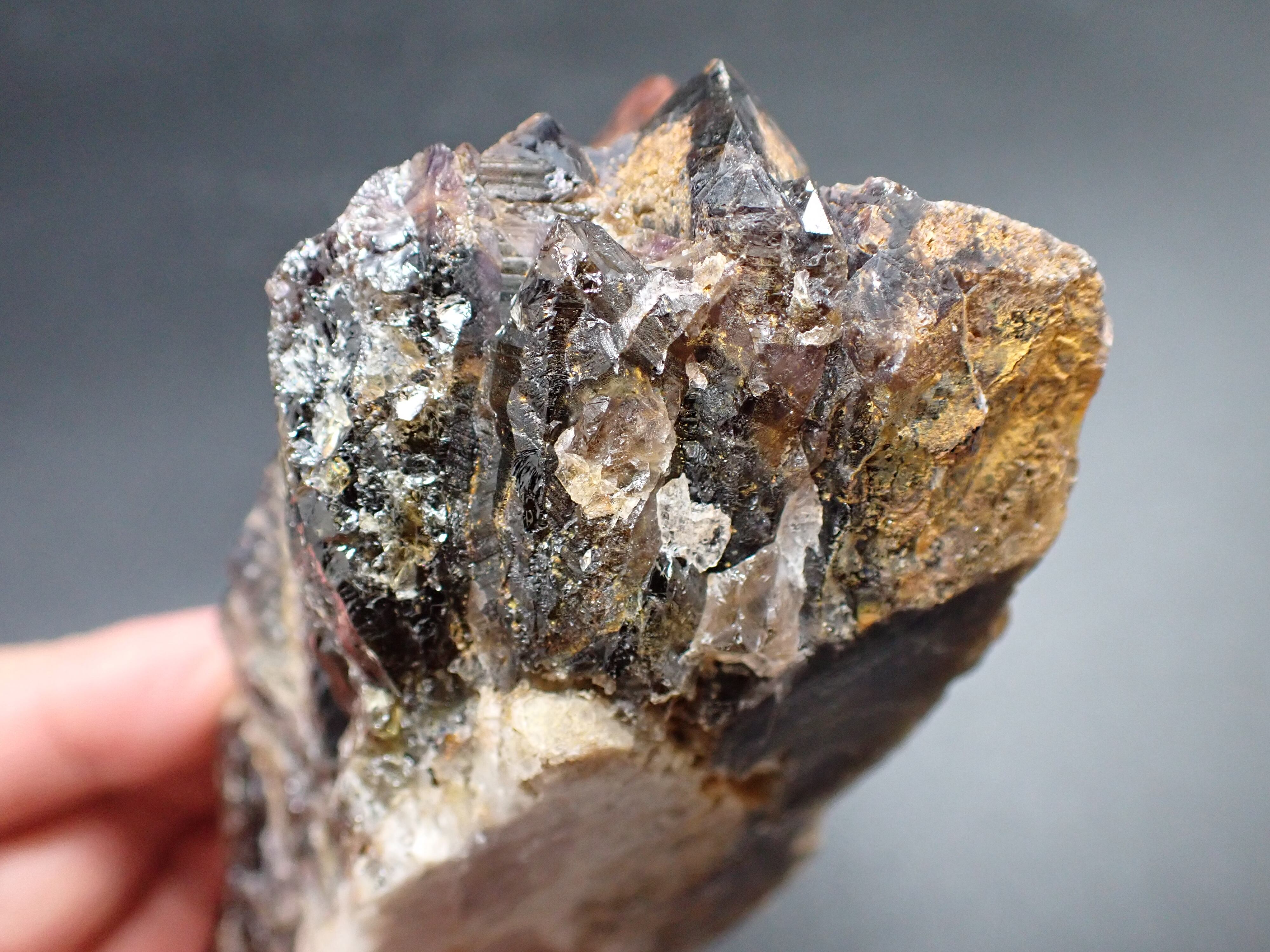 エメラルドオーラライトはプラシオライトでしたが、このオーラスターライトはアメジストベースですが、その色は特濃レベルで濃く、スモーキークォーツとシトリンも混ざっています。