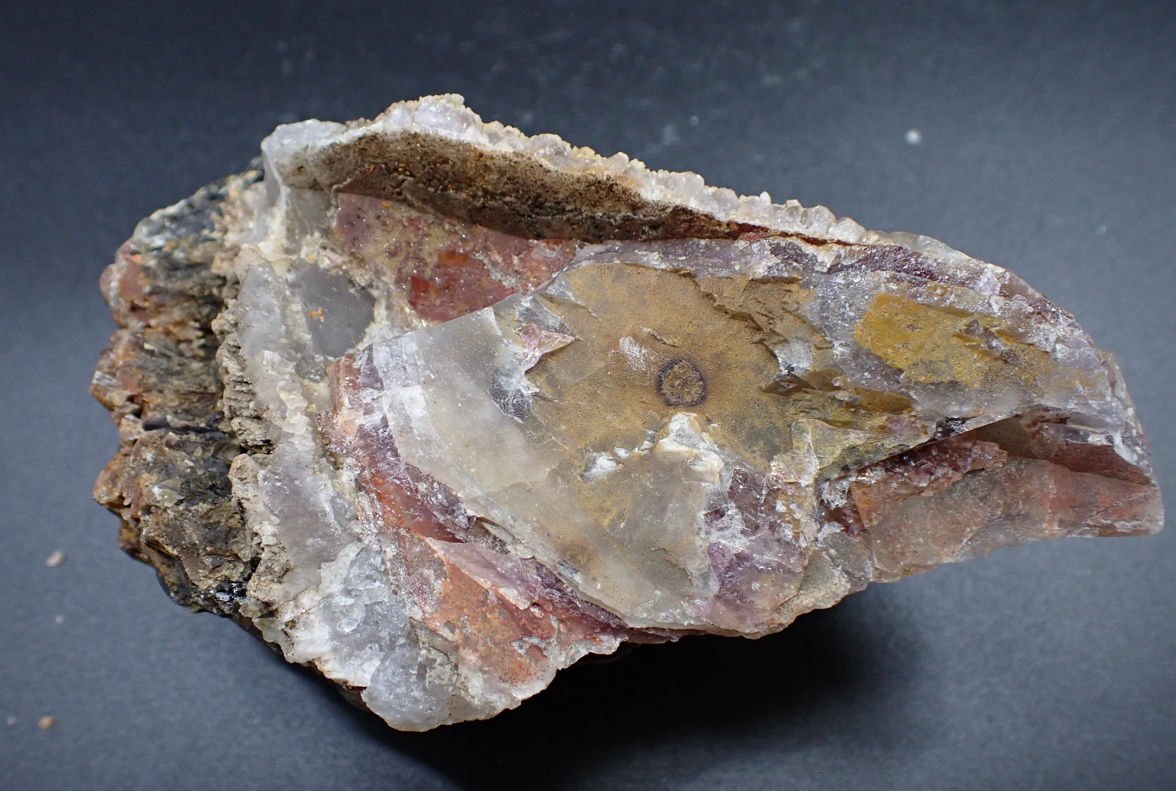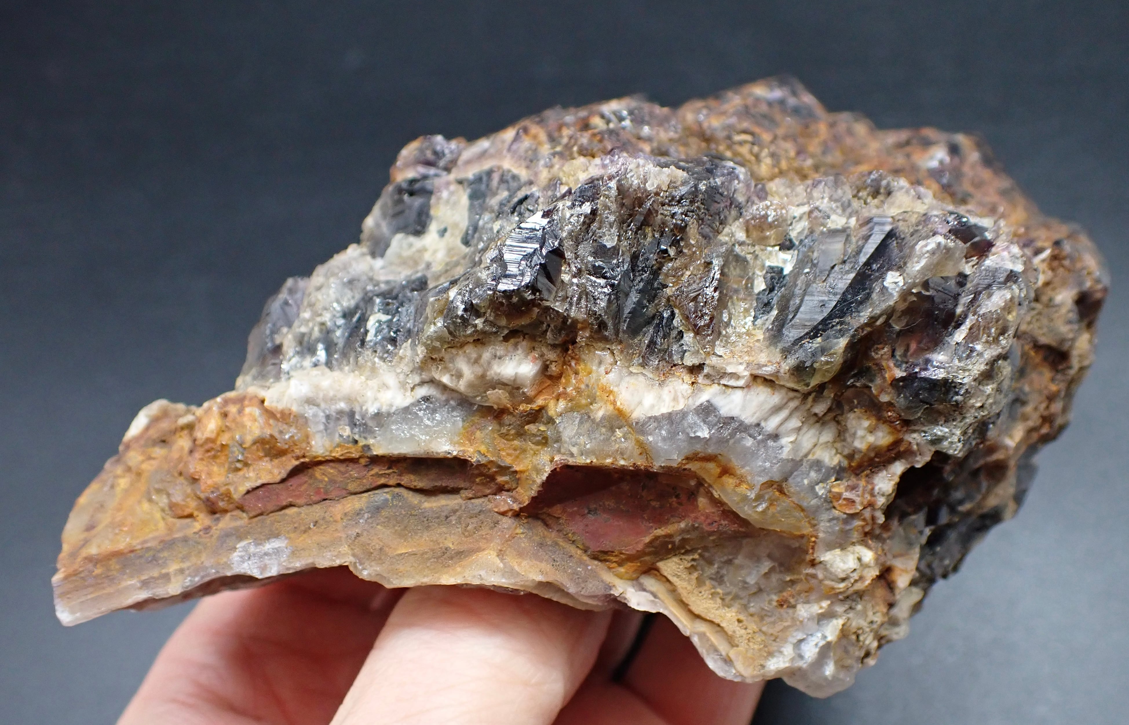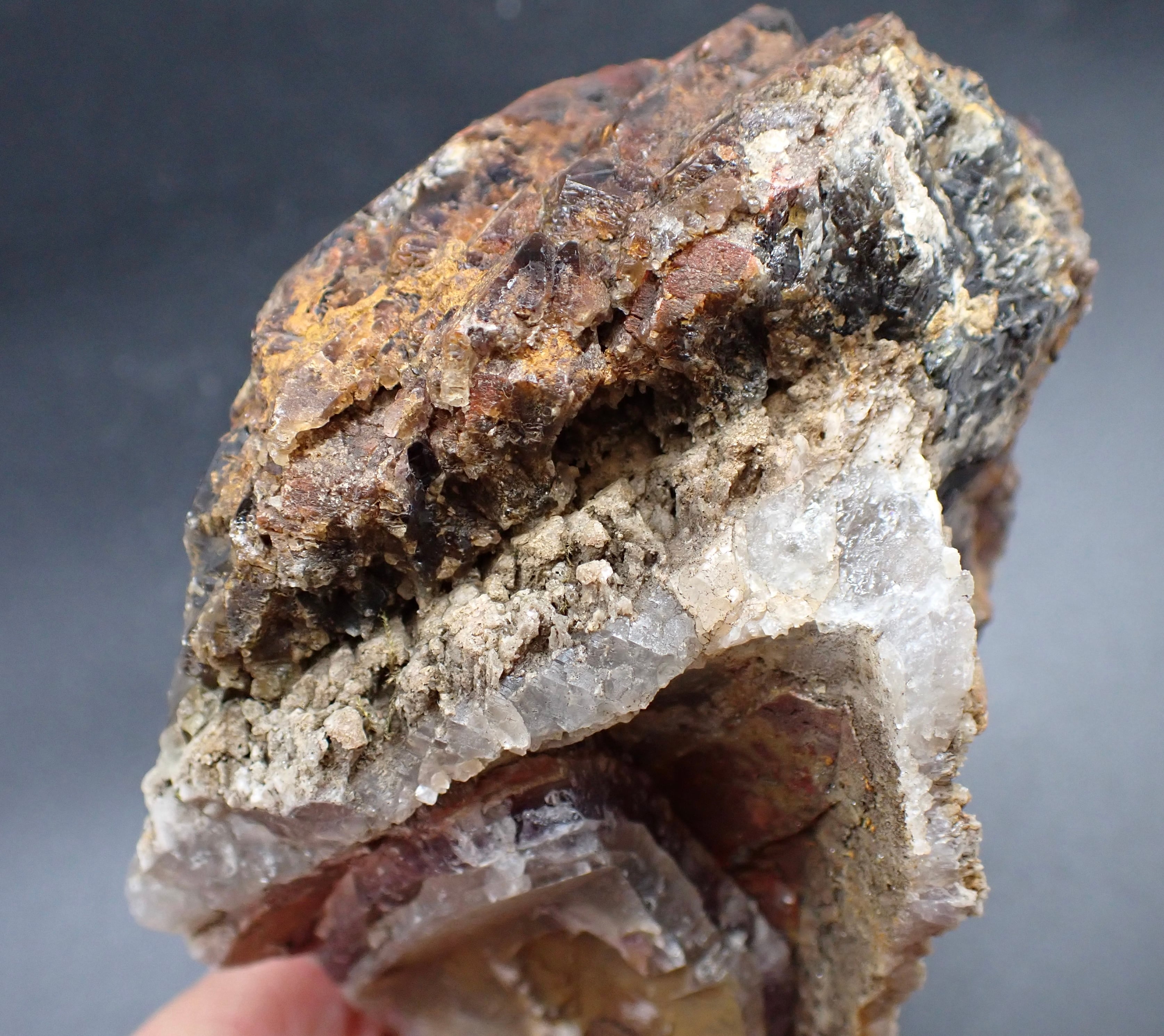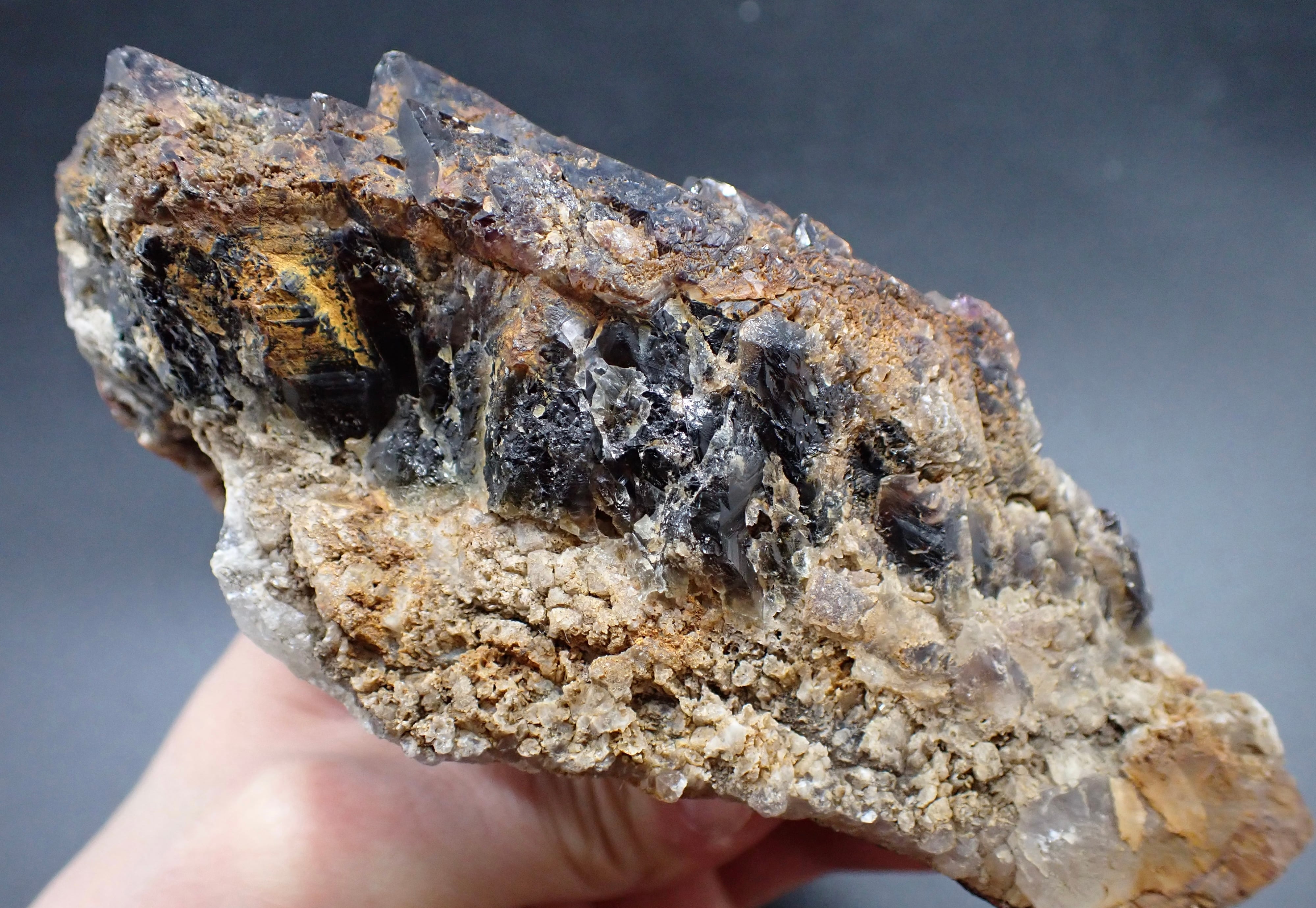 エメラルドオーラライトはプラシオライトでしたが、このオーラスターライトはアメジストベースですが、その色は特濃レベルで濃く、スモーキークォーツとシトリンも混ざっています。